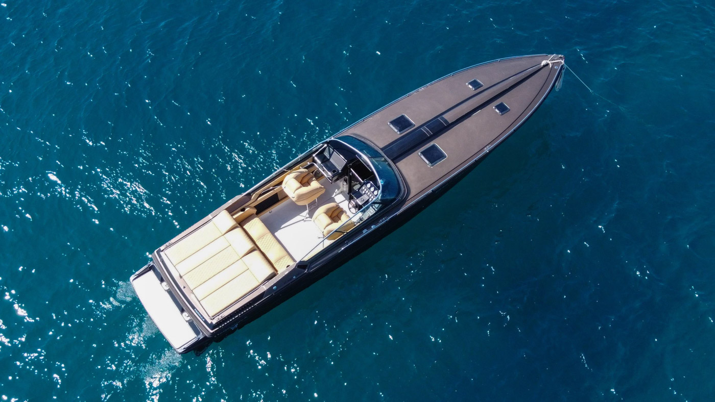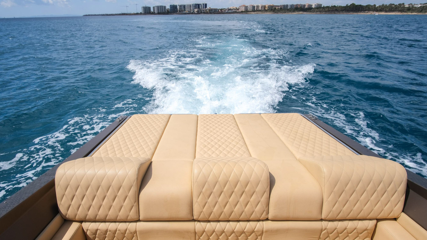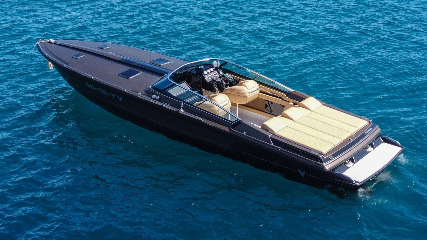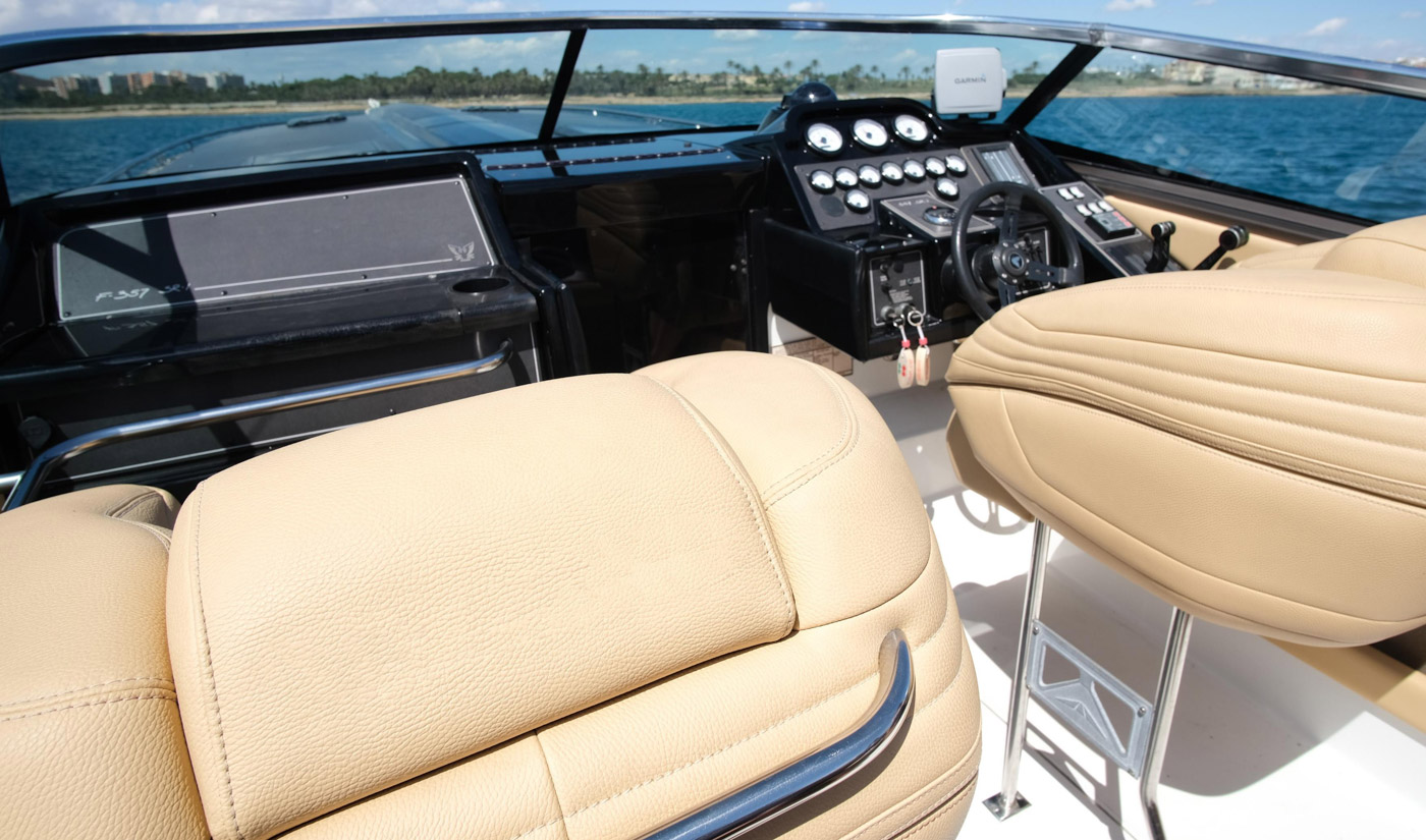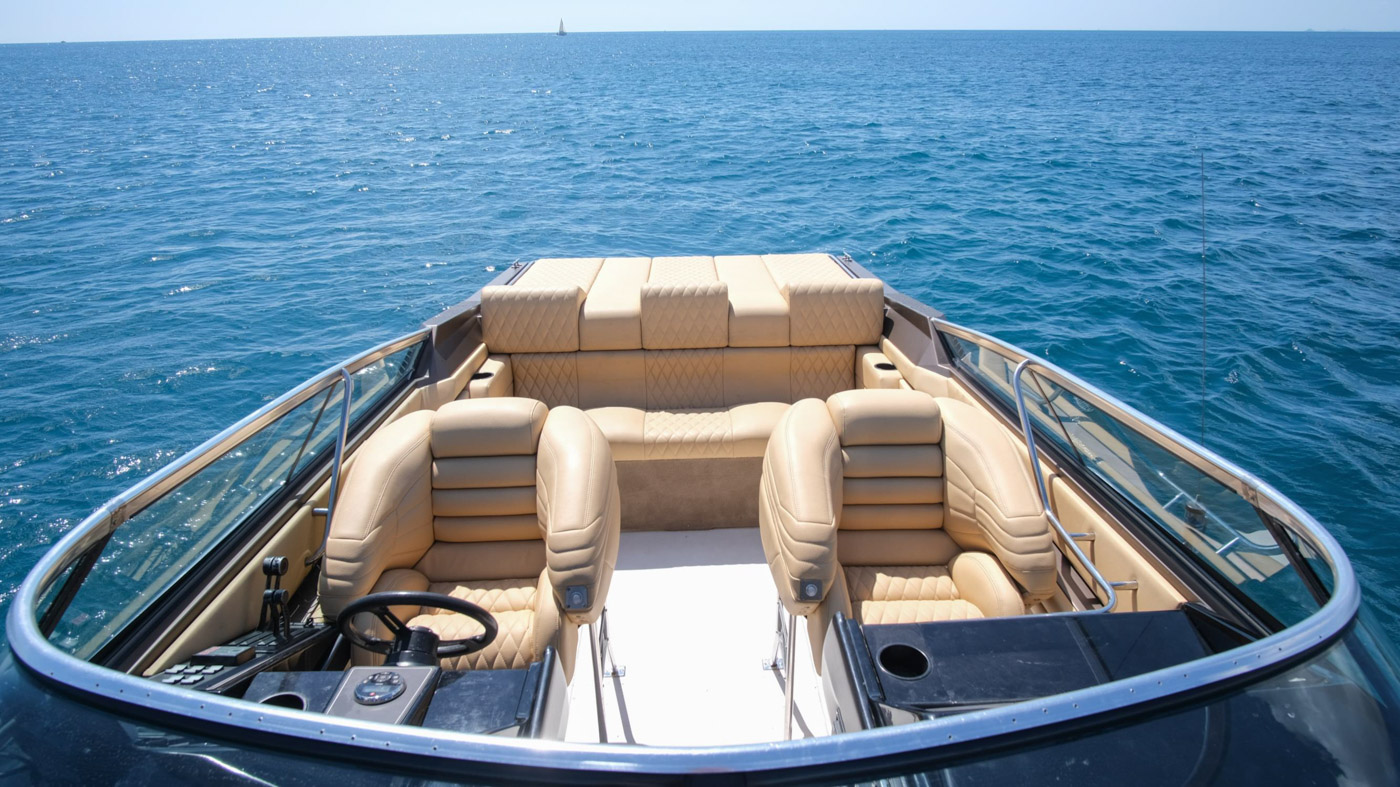 The design of FORMULA 357 SR1 is elegant and modern with light leather, creating a warm atmosphere for you and your friends. This boat can guest up to 9 guests plus the captain. Has also 1 Cabin, bathroom, High- end Sound System Rockford Fosgate, and water toys.