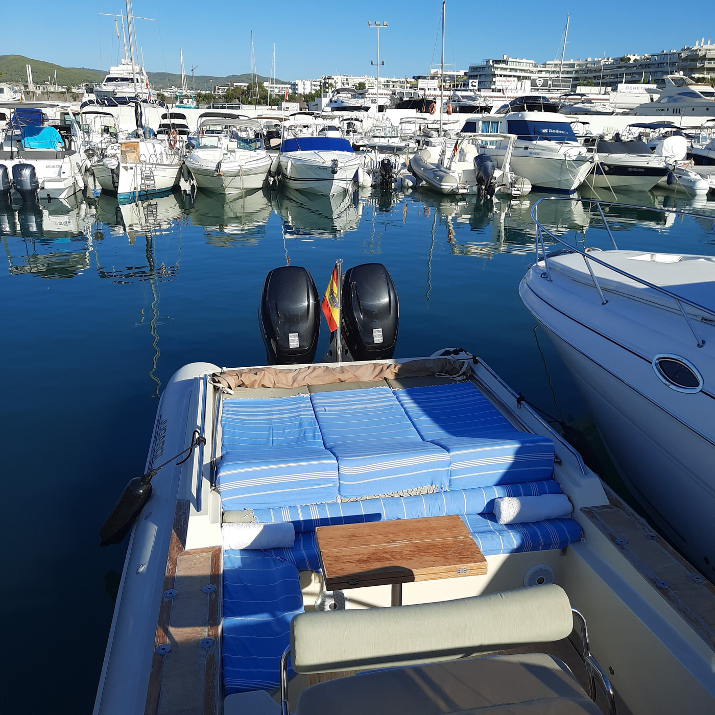 Explore Ibiza and Formentera with Scanner Envy 970. This boat is comfortable, very practical, and easy to handle.