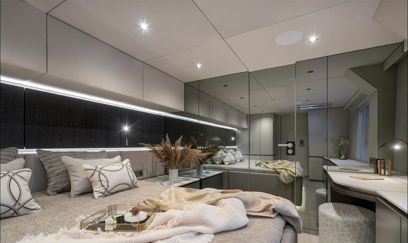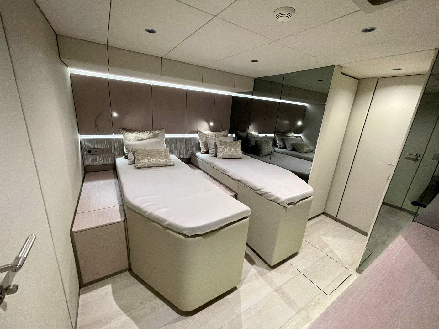 | Cabins | 4 Double cabins, 1 Office with sofa bed, 2 Crew cabins |